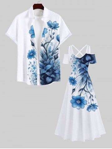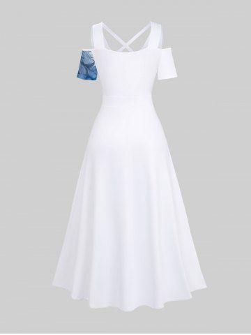 Plus Size Flowers Leaf Print Cold Shoulder Crisscross Hawaii Maxi Dress - White - 3x