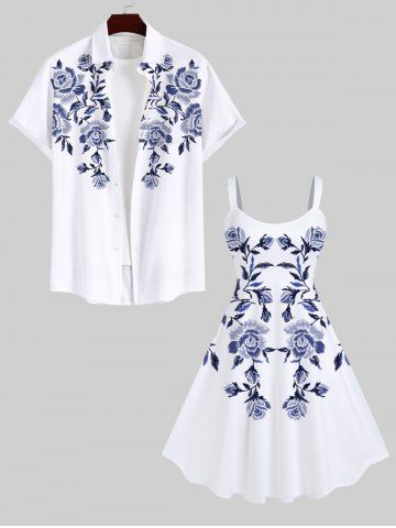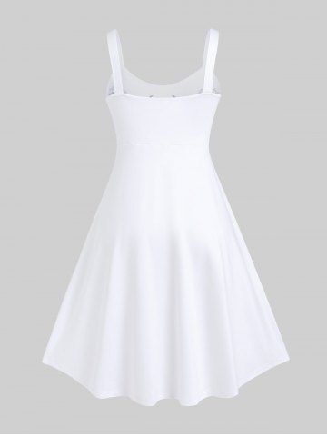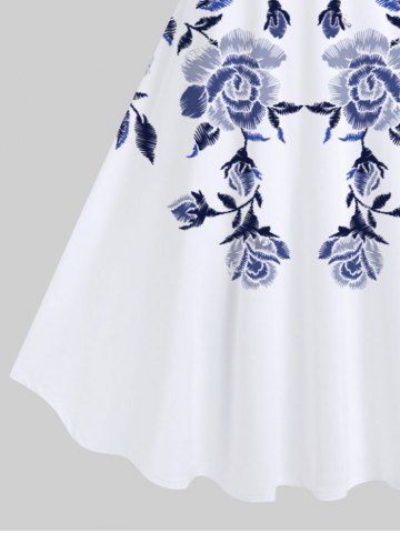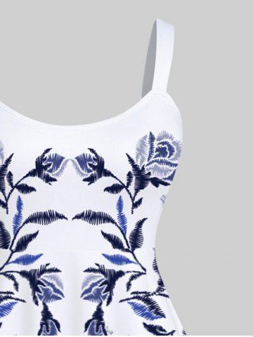 Plus Size Flowers Leaf Print Hawaii Tank Dress - White - 6x