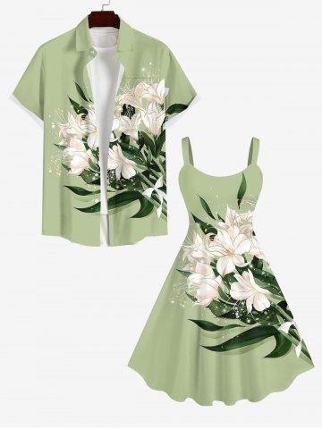 Plus Size Flowers Leaf Print Hawaii Tank Dress - Green - 4x