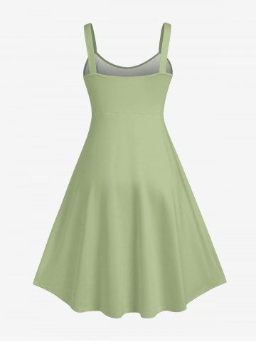 Plus Size Flowers Leaf Print Hawaii Tank Dress - Green - 5x