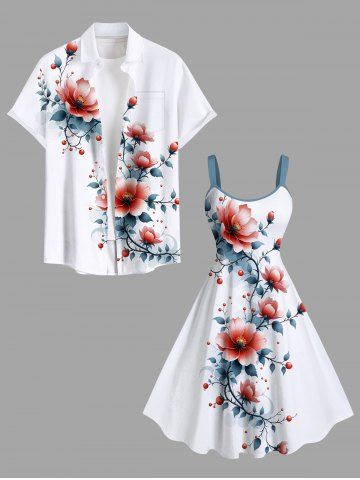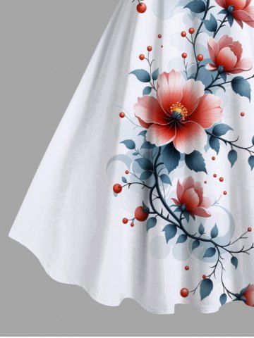 Plus Size Flowers Leaf Print Hawaii Tank Dress - White - 6x