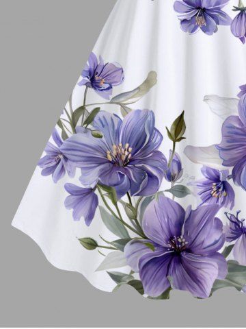 Plus Size Flowers Leaf Print Hawaii Tank Dress - Purple - 5x