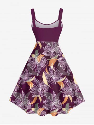 Plus Size Flowers Leaf Print Hawaii Tank Dress - Purple - 2x