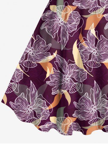 Plus Size Flowers Leaf Print Hawaii Tank Dress - Purple - 5x