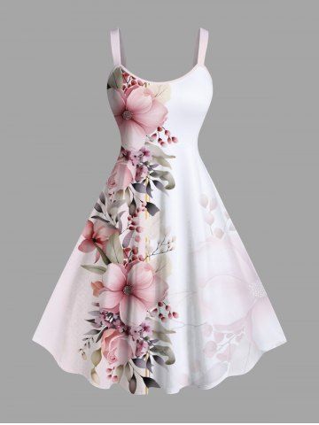 Plus Size Flowers Leaf Print Hawaii Tank Dress - White - 3x