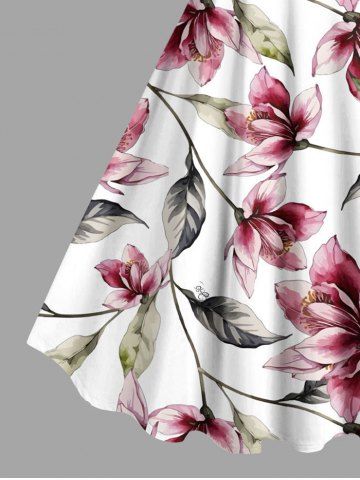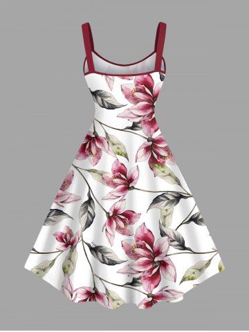 Plus Size Flowers Leaf Print Hawaii Tank Dress - White - 2x