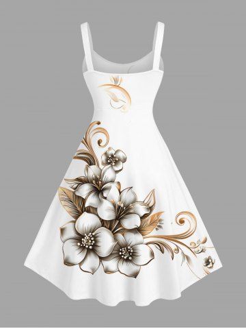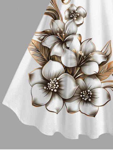 Plus Size Flowers Leaf Print Hawaii Tank Dress - White - 6x