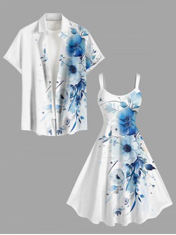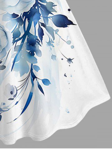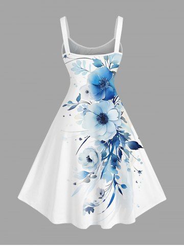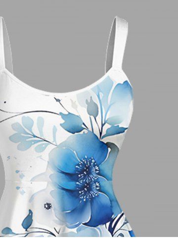 Plus Size Flowers Leaf Print Hawaii Tank Dress - White - L
