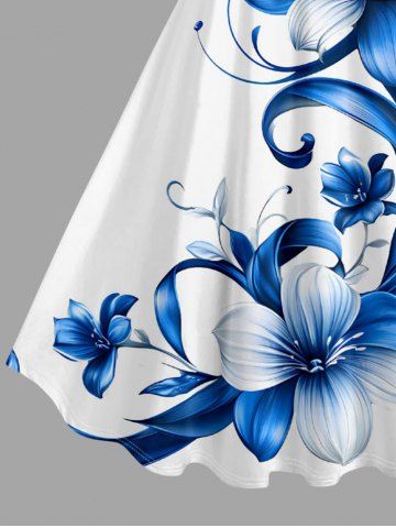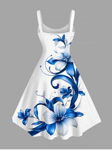 Plus Size Flowers Leaf Print Hawaii Tank Dress - White - 6x