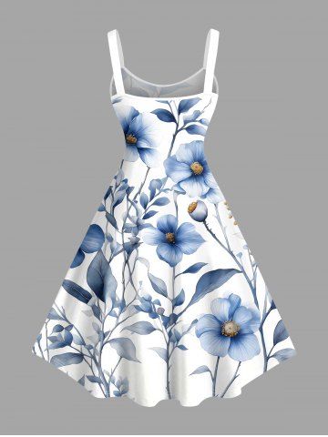 Plus Size Flowers Leaf Print Hawaii Tank Dress - Blue - Xs