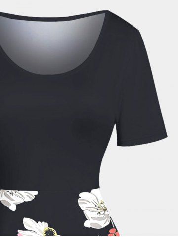 Plus Size Flowers Leaf Print Hawaii Vintage Dress - Black - 3x
