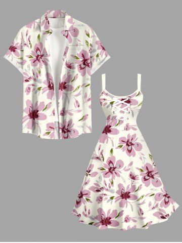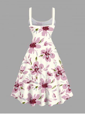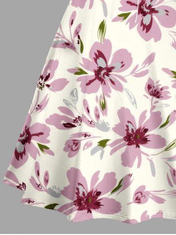 Plus Size Flowers Leaf Print Lace Up Panel Hawaii Tank Dress - Pink - Xxs
