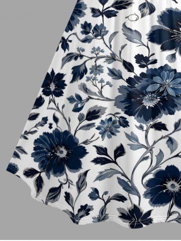 Plus Size Flowers Leaf Print Ruched Lattice Crisscross Straps Hawaii Dress - Deep Blue - 6x