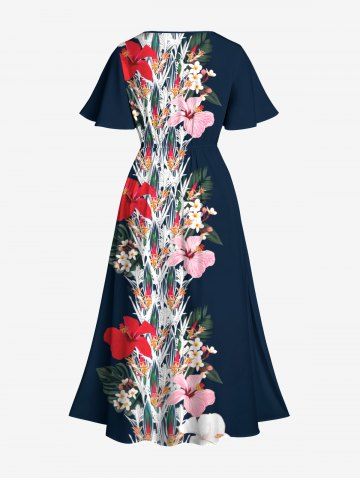 Graphic Dresses > Plus Size Flowers Leaf Print Split Hawaii Midi Dress