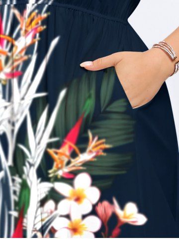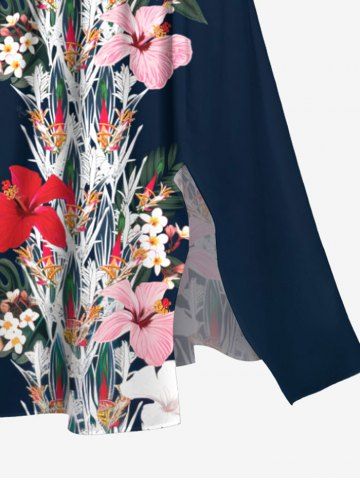 Plus Size Flowers Leaf Print Split Hawaii Midi Dress - Black - M