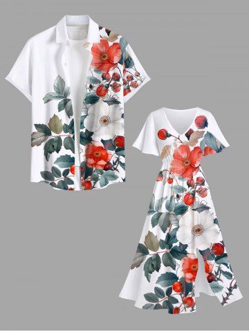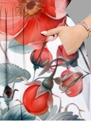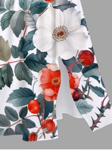 Plus Size Flowers Leaf Print Split Hawaii Midi Dress - White - 1x