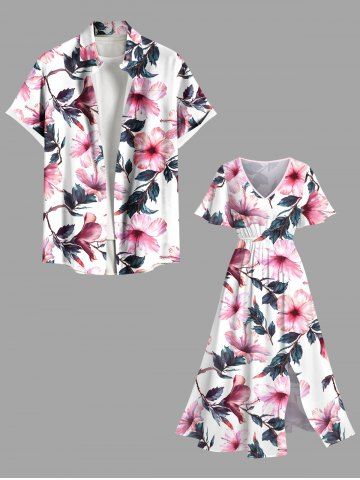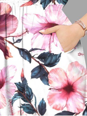 Plus Size Flowers Leaf Print Split Hawaii Midi Dress - Light Pink - 6x