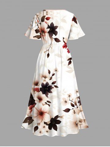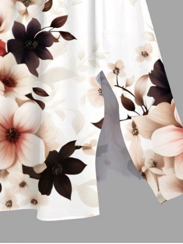 Plus Size Flowers Leaf Print Split Hawaii Midi Dress - White - 4x