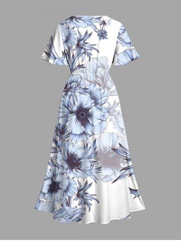 Plus Size Flowers Leaf Print Split Hawaii Midi Dress - White - M
