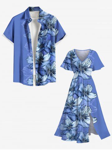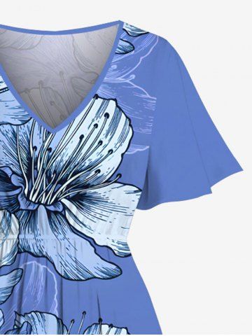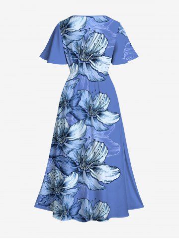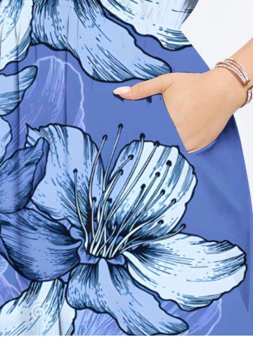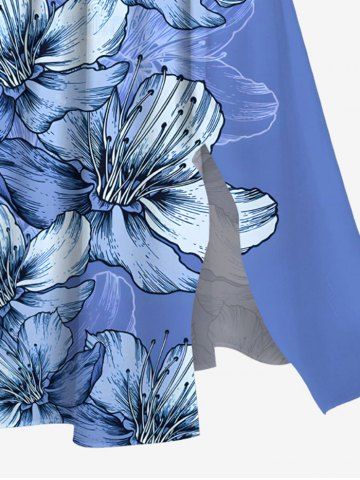 Plus Size Flowers Leaf Print Split Hawaii Midi Dress - Sky Blue - 2x