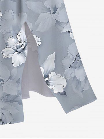 Plus Size Flowers Leaf Print Split Hawaii Midi Dress - Light Gray - 3x