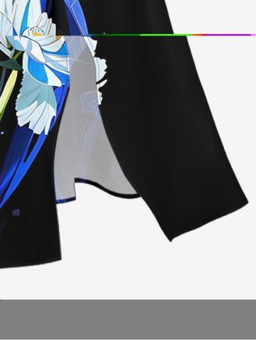 Plus Size Flowers Leaf Print Split Hawaii Midi Dress - Black - M