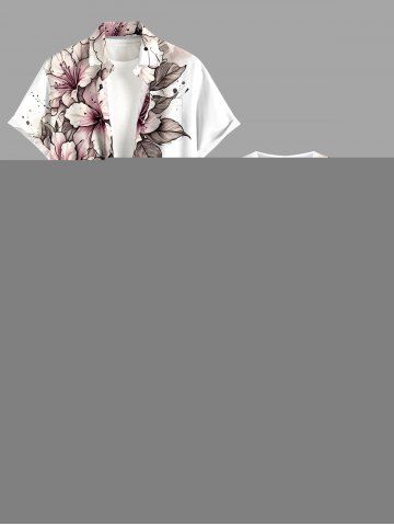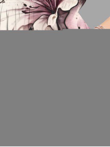 Plus Size Flowers Leaf Print Split Hawaii Midi Dress - White - Xxs