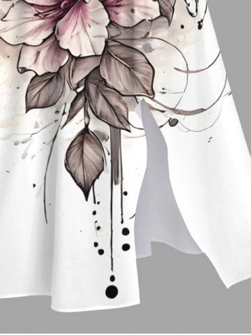 Plus Size Flowers Leaf Print Split Hawaii Midi Dress - White - Xs