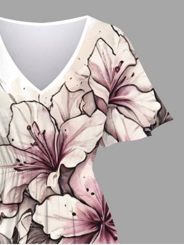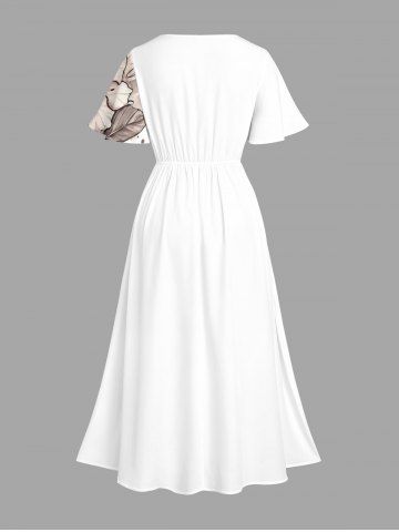 Plus Size Flowers Leaf Print Split Hawaii Midi Dress - White - 2x