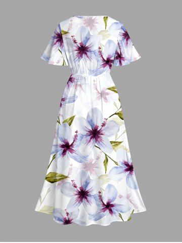 Plus Size Flowers Leaf Print Split Hawaii Midi Dress - White - 4x
