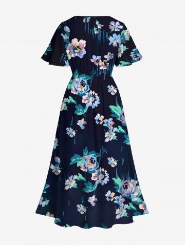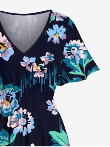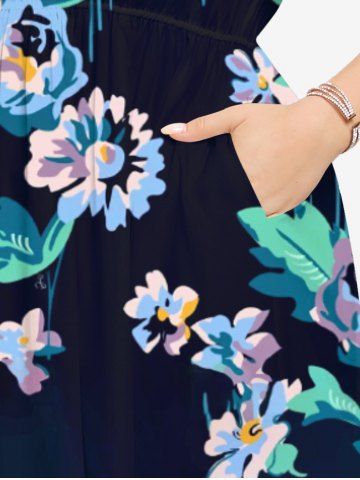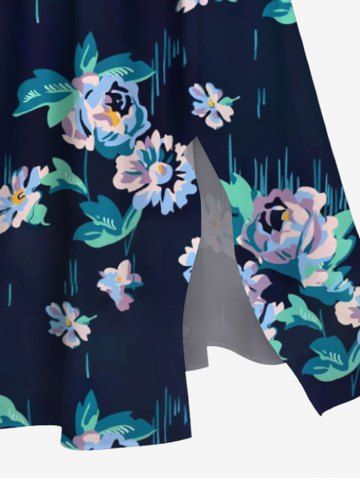 Plus Size Flowers Leaf Print Split Hawaii Midi Dress - Black - 4x