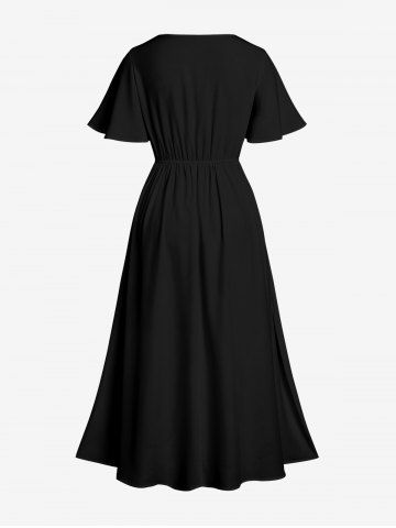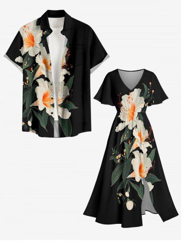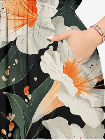 Plus Size Flowers Leaf Print Split Hawaii Midi Dress - Black - 6x