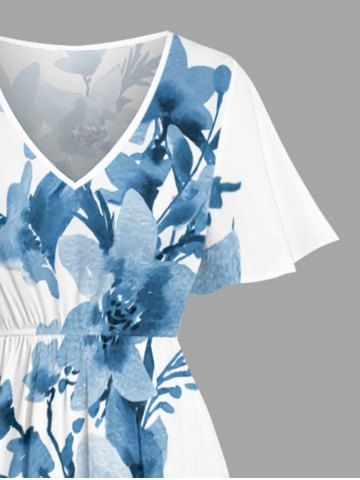 Plus Size Flowers Leaf Print Split Hawaii Midi Dress - Powder Blue - Xs