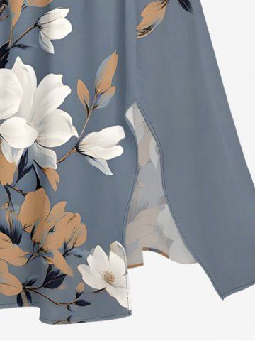 Plus Size Flowers Leaf Print Split Hawaii Midi Dress - Light Gray - 5x