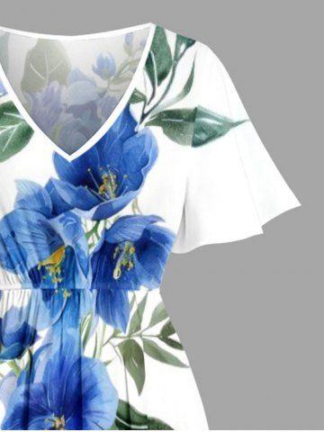 Plus Size Flowers Leaf Print Split Hawaii Midi Dress - White - Xs
