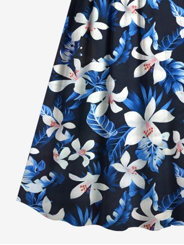 Plus Size Flowers Leaf Print Surplice Hawaii Cami Dress - Blue - 2x