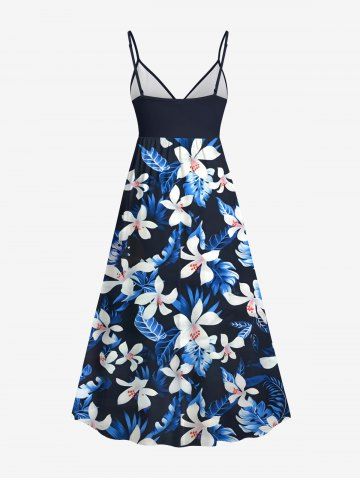 Plus Size Flowers Leaf Print Surplice Hawaii Cami Dress - Blue - 5x