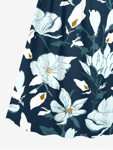 Graphic Dresses > Plus Size Flowers Leaf Print Surplice Hawaii Cami Dress