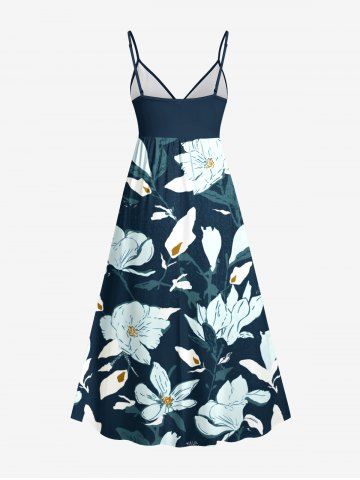 Graphic Dresses > Plus Size Flowers Leaf Print Surplice Hawaii Cami Dress