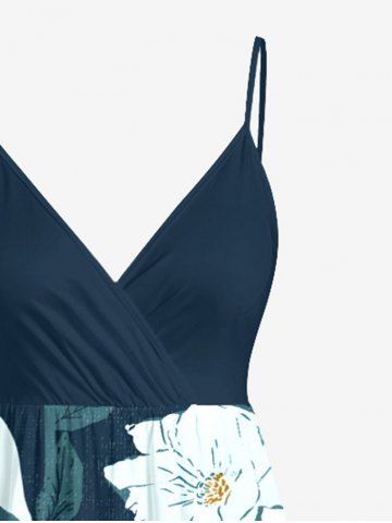 Graphic Dresses > Plus Size Flowers Leaf Print Surplice Hawaii Cami Dress