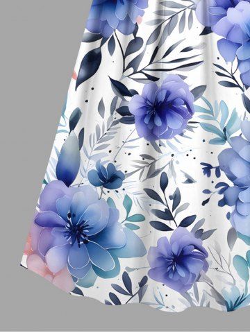 Graphic Dresses > Plus Size Flowers Leaf Print Surplice Hawaii Cami Dress