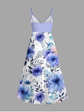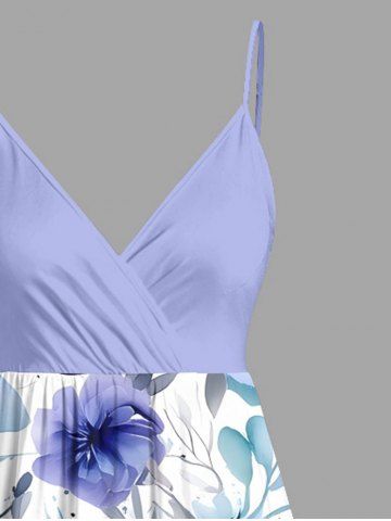 Plus Size Flowers Leaf Print Surplice Hawaii Cami Dress - Light Purple - 2x