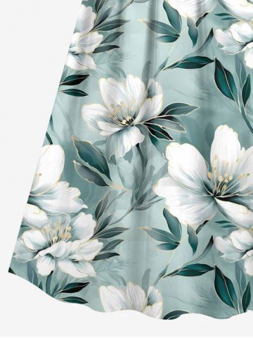 Plus Size Flowers Leaf Print Surplice Hawaii Cami Dress - Green - S