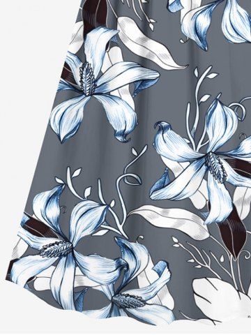 Plus Size Flowers Leaf Print Surplice Hawaii Cami Dress - Light Gray - 1x