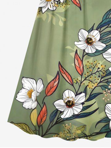 Graphic Dresses > Plus Size Flowers Leaf Print Surplice Hawaii Cami Dress
