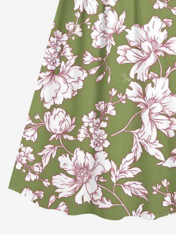 Plus Size Flowers Leaf Print Surplice Hawaii Cami Dress - Green - M