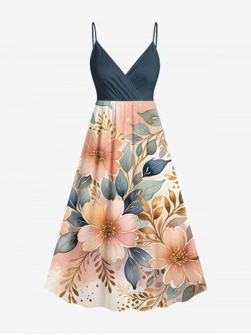 Graphic Dresses > Plus Size Flowers Leaf Print Surplice Hawaii Cami Dress