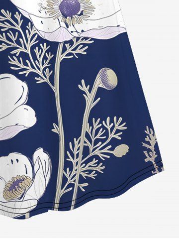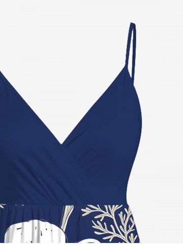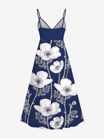 Plus Size Flowers Leaf Print Surplice Hawaii Cami Dress - Navy Blue - 1x