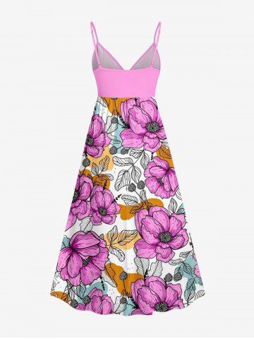 Plus Size Flowers Leaf Print Surplice Hawaii Cami Dress - Hot Pink - L