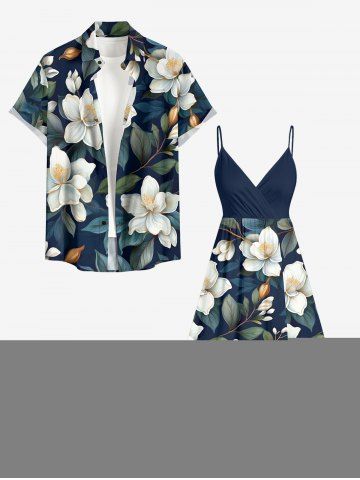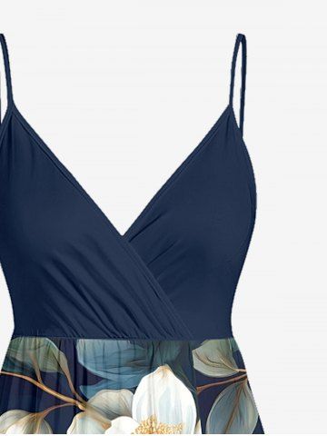 Plus Size Flowers Leaf Print Surplice Hawaii Cami Dress - Deep Blue - Xxs